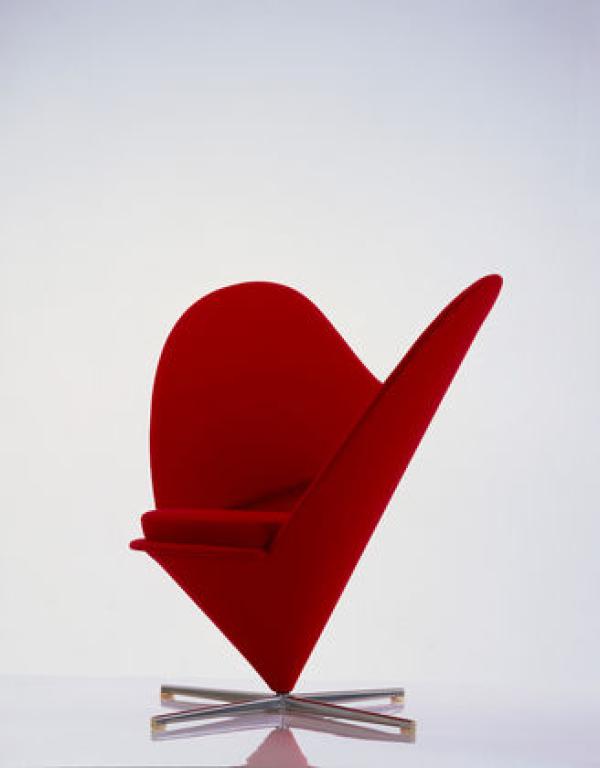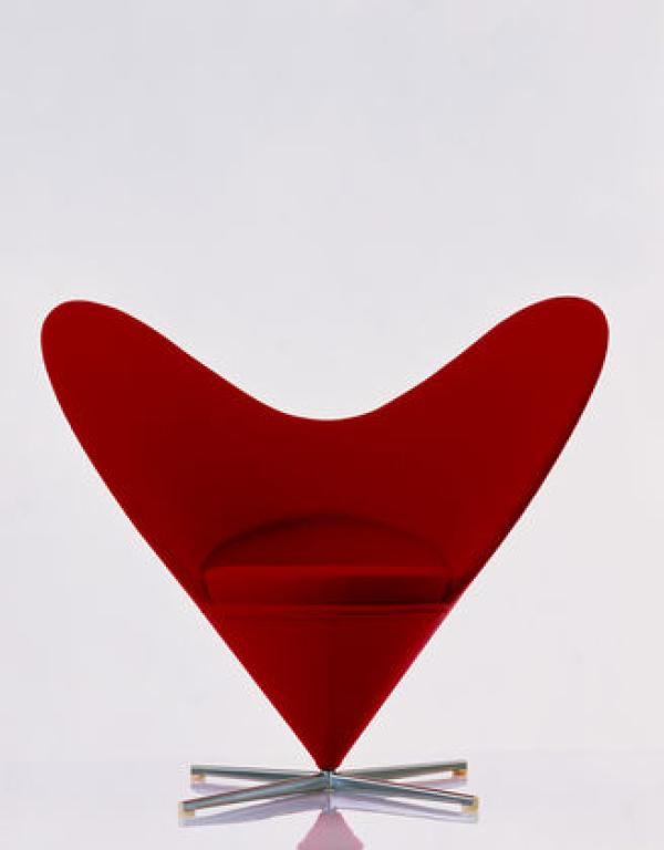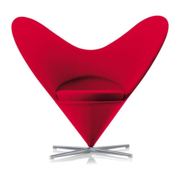 Heart Cone ChairA variant on Cone Chair, designed one year later and baptized Heart Cone Chair because of its heart-shaped outline. Heart Cone Chair has large, projecting wings reminiscent of Mickey Mouse ears that could also, however, be interpreted as a contemporary take on the classic wing chair. Laminated body, base in satin stainless steel, Polyurethane foam upholstery.