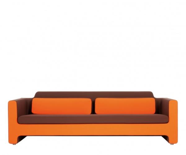 HorizonModular seating system composed of armchairs, sofas with cushions with two or three seats, dormeuse with one armrest and one cushion, daybed and pouf. Paddings and cushions are made in polyurethane foams in various densities. Cover in fabric, synthetic material, leather.