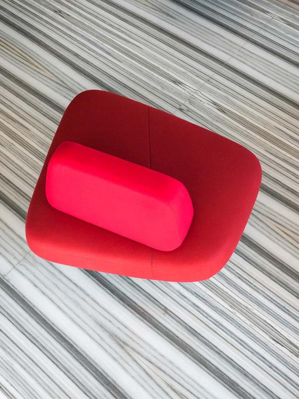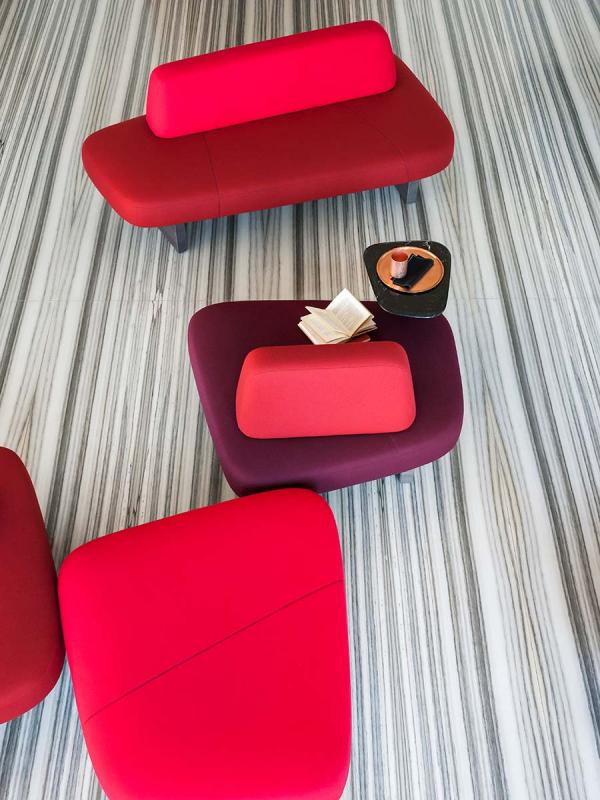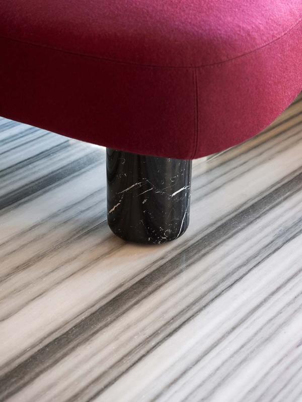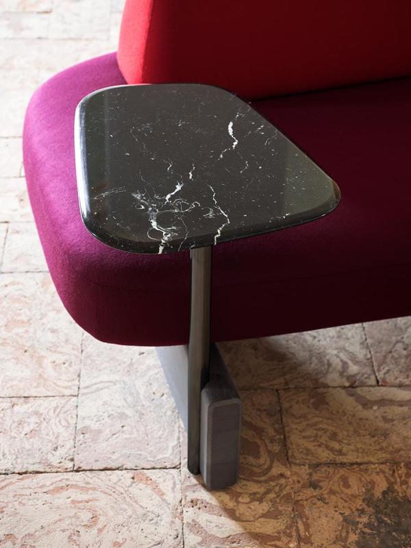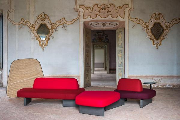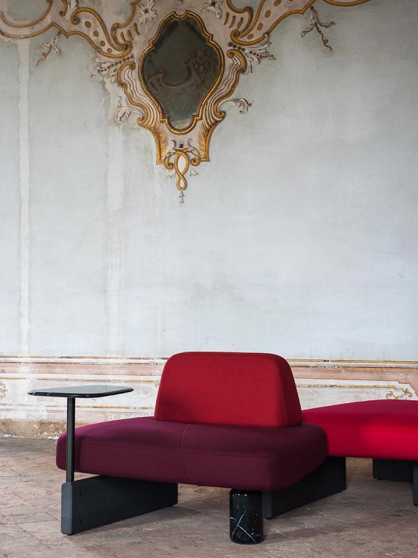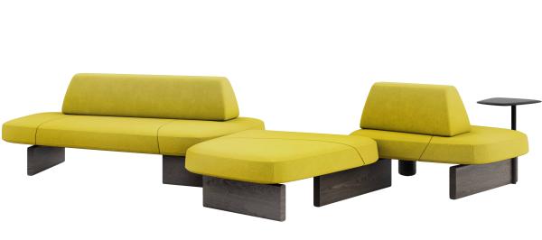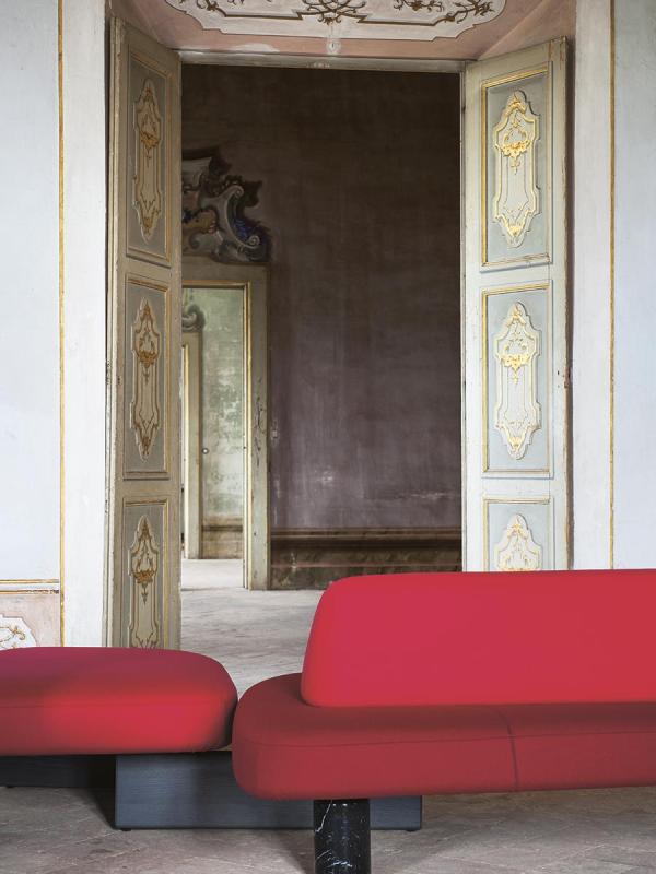 In the beginning there were rocks, shaped by the wind and the waters, veined stones, perfectly overlaid or slotted together by nature. Then, when organic shapes inspired artistic forms, we saw monoliths such as those of Barbara Hepworth and abstract paintings from Serge Poliakoff. Descended from this same line is the new design by Pearson Lloyd, a modular system influenced by natural shapes and artistic allusions, destined for collective settings. Ischia comprises a number of freely-combinable individual components: the seats can be single or double, and come with or without a backrest. The system also offers the possibility of adding a table or a woven cane screen, to keep any given area separate and hidden away. The components have an essential feel, with soft shapes and oblique lines, balanced out by the strong finishes of the wood or marble bases that connect them up.