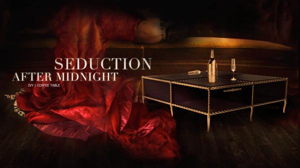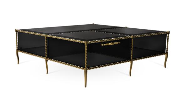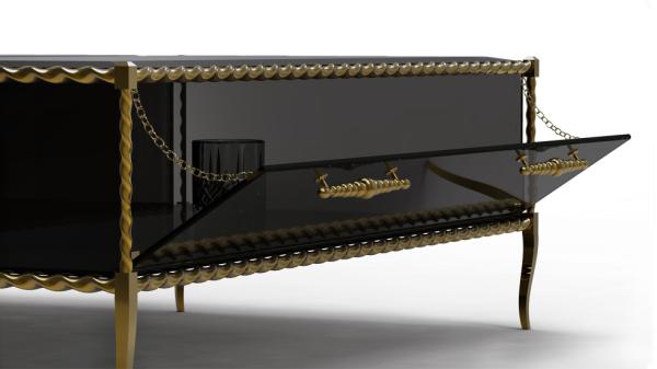Ivy | Coffee TableThough simplistic in its form, Ivy is far from being simple. Coils of golden rope are wrapped along the edges, giving away to the translucent outline. Golden spirals are twisted creating the illusion of tiny stacked beads for handles. And sleek slender legs rest themselves beneath its demure design.