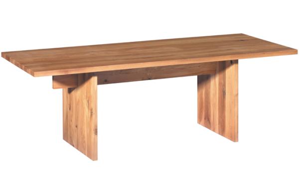 JAPANThe two legs are connected by means of a board that runs centrally between them for structural stability. The table top, bracket and legs, are made of 40 mm (1 5/8 inch) thick solid wood. The top is additionally reinforced with steel profiles. Each of the four parts is made of 7 boards, the table clearance is 710 mm (28 Inch). It is assembled from four parts. |