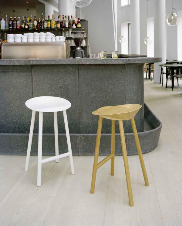 JEANThe bar stool ST10 JEAN is a natural development of the dynamic chair family CH04 HOUDINI. ST10 JEAN consists of a seat with circumferential brim, which provides comfort and hold when seated. Between the front two legs runs a cross beam with an embedded plastic profile, which acts as a foot rest and gives the stool stability. The bar stool ST10 JEAN, made from oak- or walnut veneered plywood, lacquered, is available in two heights which makes it suitable for contract as well as private use at a kitchen counter. Upholstery of the seat is possible. The bar stool is not stackable and is delivered as one piece. |