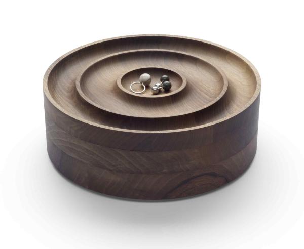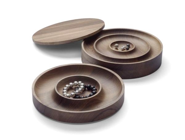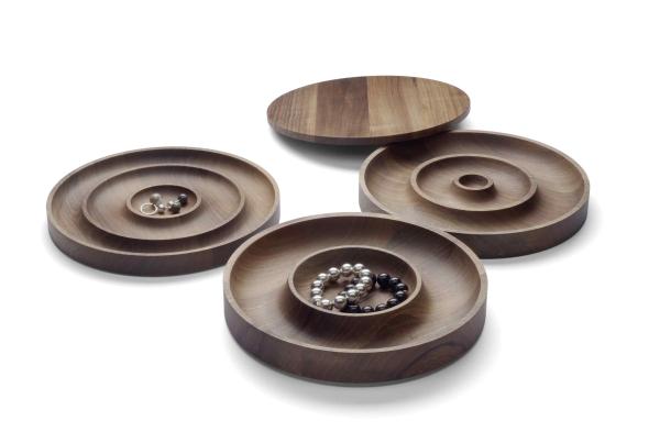 JEWELThe jewellery case AC02 JEWEL presents a special collaboration with the Munich designer Saskia Diez. From solid European walnut, the stackable, three-piece case extends the accessory range of e15. Each of the three shaped pieces has different interior partitions which lend itself beautifully to the storing of precious jewellery. The top sheath finishes with a closing top. The reduced design of AC02 JEWEL is in line with the aesthetics and design language of e15 and emphasises the used material. |