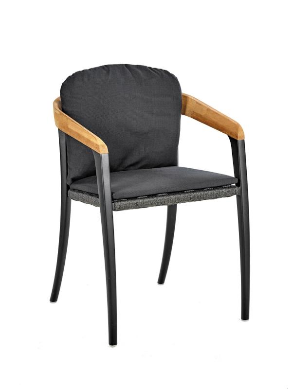This garden chair combines in a very harmonious way teak with tapered aluminum profiles and olefin fiber into an inviting, very decorative and refreshing chair. Due to the marriage of these materials, the chair is a chameleon and will fit both with a contemporary looking table as well with a warm teakwooden table! Be seated and overwhelmed…