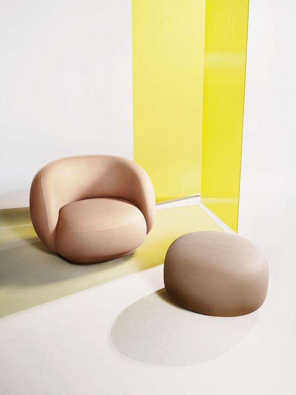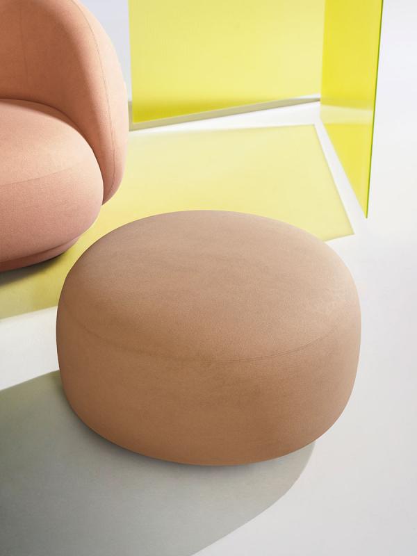 Julep OttomanJulep Ottoman A family of upholstered sofas characterised by soft and enveloping shapes and by a contemporary, romantic and feminine allure, Julep is inspired by the Avant-Garde furniture of the Fifties, from which it recovers its simplicity and majesty. The family’s showpiece is the sofa, with its rounded and generous shape, from which the entire collection has then developed – an armchair, a three seater sofa and a footstool – in a game of proportions and volumes which has led to many expressive variations – like the three seater sofa featuring an oversize seat and the sofa with an integrated chaise longue. Fully upholstered, the seats look warm and voluptuous, yet light, thanks to their recessed base which lifts them invisibly from the ground. Their welcoming appearance invites to intimity and rest.