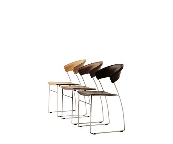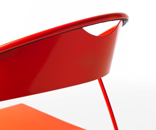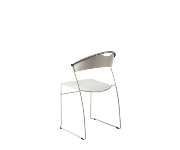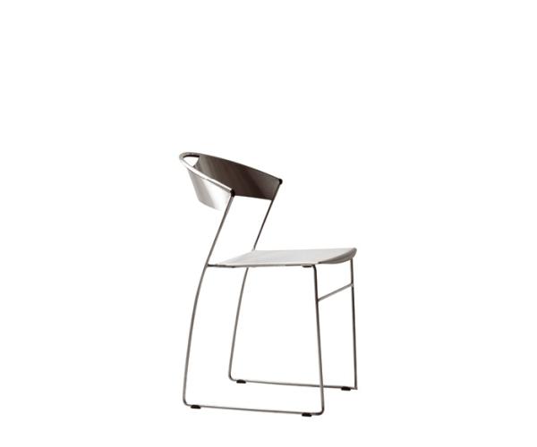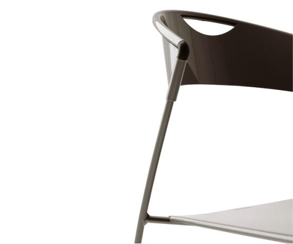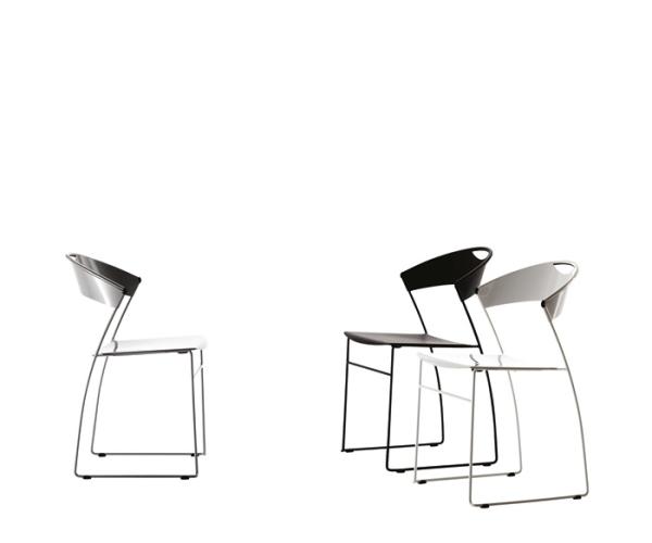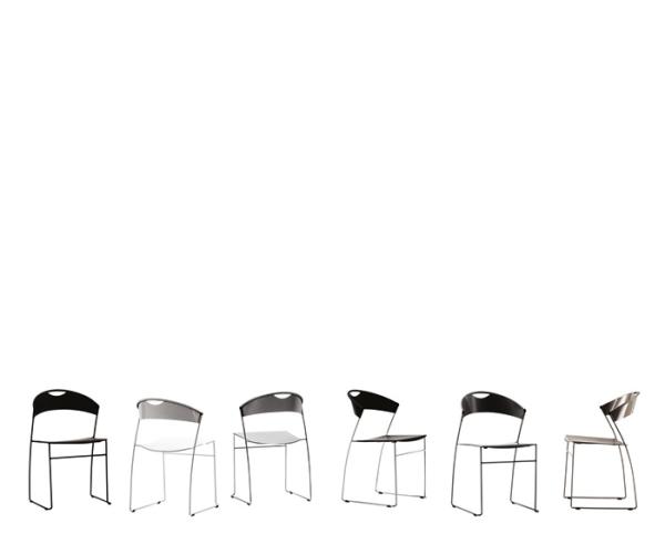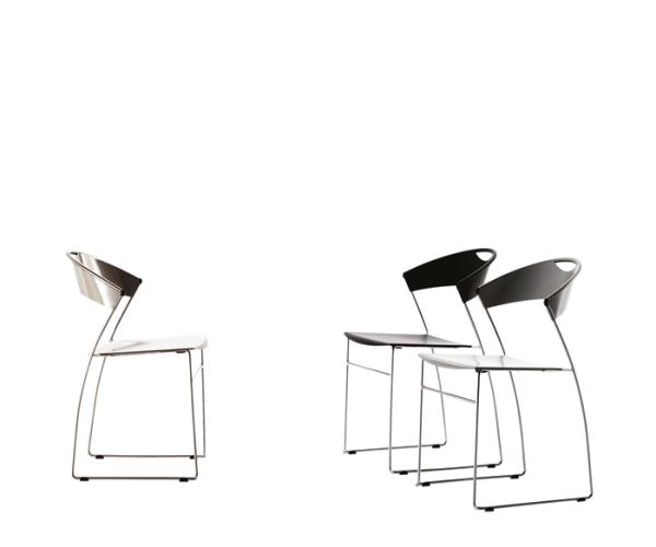 "Seating system with structure in steel rod painted with epoxy powders in matt black metallic silver and white, seat and seatback in moulded sheet metal painted to match the structure. Chromed structure versions with seat and seatback painted matt black or brushed aluminium.