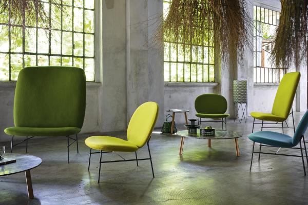 Kelly is a collection of chairs characterized by a friendly and jovial spirit which is expressed with organic shapes, pure and shiny colours and positive feelings. The personality of every model is distinguished by various shapes and sizes of seat and backrest, always suspended on thin metallic structures which remind vintage furniture and modern art’s works. Kelly chairs can stay independent or create different combinations and compositions, both in domestic and public environments. Kelly lounge armchair can be also combined with a coordinated footrest.