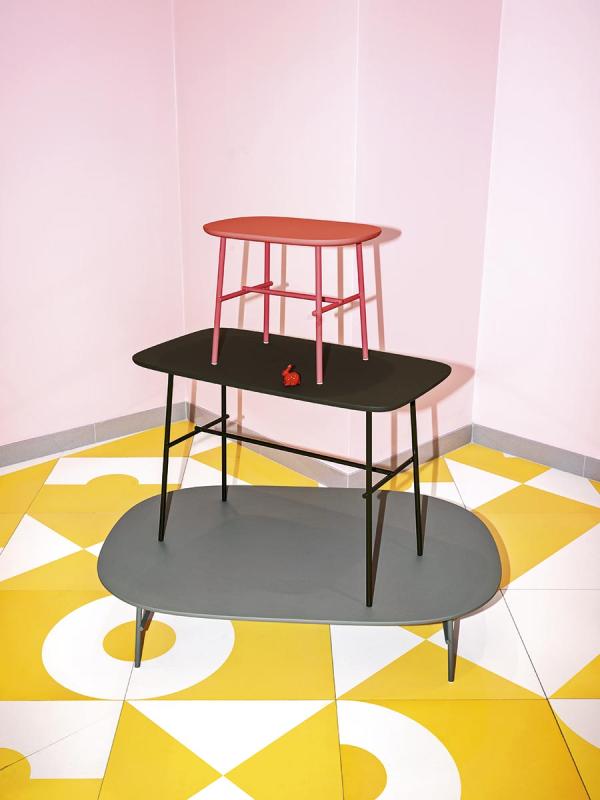 Kelly OCreated in order to complete Kelly seating collection, but usable in every situation, from home to contract, these small tables with different heights stand out for the top’s organic shape and for the thin metallic structure that make them dynamic and light. Base: tubular metal frame Ø 18 mm (high tables), Ø 14 mm (low tables) powder-coated painted.