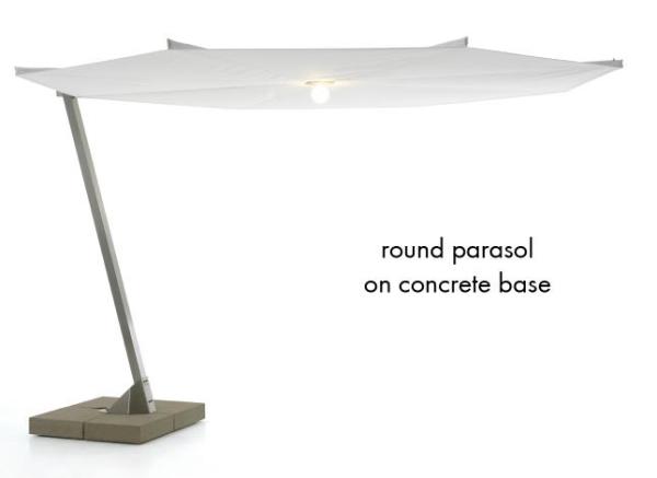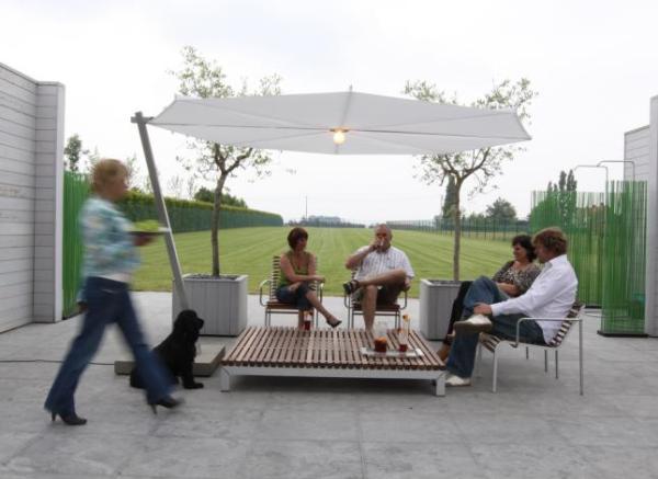 Naturally, the Kosmos parasol combines perfectly with the Kosmos table and seat combination, but it can also be used separately. Kosmos parasol – a whole set of advantages