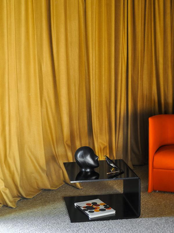 Manufactured from one sheet of glass, painted with a gloss finish on the outside and an opaque finish on the inside. The Labanca Table is designed to complete the unique sofa collection by Tacchini but can find a place in many other spaces from the day to the night time living zones of our homes.