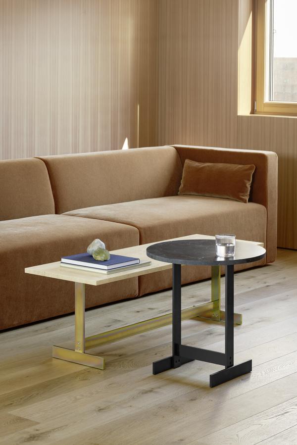 Inspired by Suprematist compositions, side table LAZLO is strongly connected to the design character of table KAZIMIR. Well-defined geometric forms emphasize distinct combinations of materials such as unfilled travertine, honed marble or solid wood surfaces in contrast with blackened steel or zinc galvanised steel frames. Available in various heights and dimensions the occasional tables ideally complement living room, foyer or office situations. |