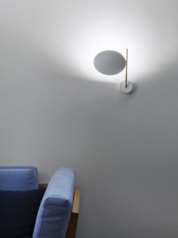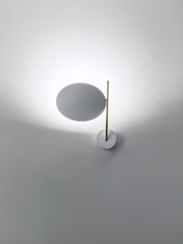 made of metal rod and base; aluminium disc with nickel joint; available in different combinations of colours: black disc, copper or satin rod and black base; disc lined with gold or copper coloured leaf, black rod and base; white disc, gold or satin rod, white base; chrome disc, satin rod and base.