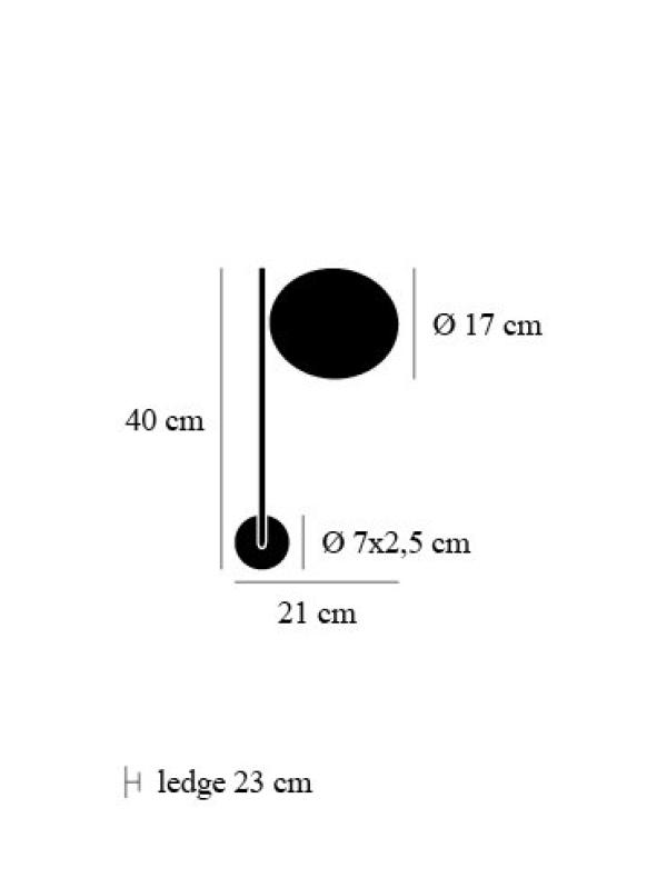 base Ø 7x2,5 cm, swiveling disc Ø 17 cm position to right (available on request), ledge 23 cm, H 40 cm ca. |