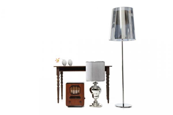 Light Shade Shade floor lampLight Shade Shade is a one way mirror that reflects its environment as well as concealing the chandelier within. When the light is turned on, the ‘Light Shade Shade’ reveals its unforeseen identity and projects the former beauty that lies within. Launch : 1999 Dimensions : 187x52cm (Hxø) |