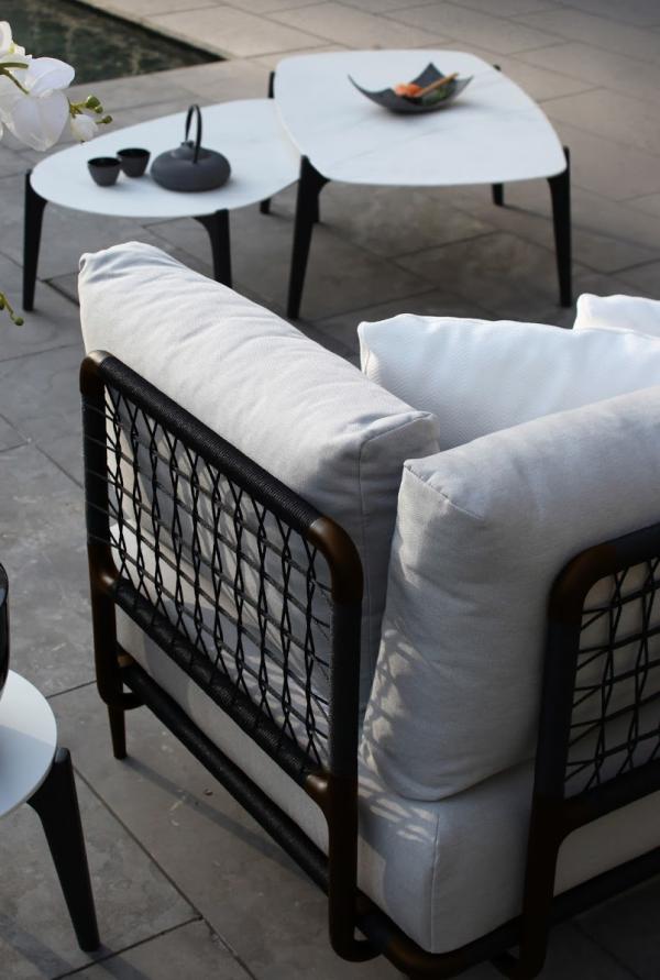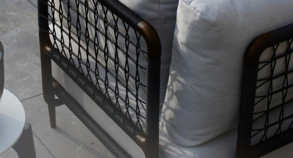 LUSIT LoungeDesign by Kris Van Puyvelde & Frank Boschman The frame of the Lusit Lounge consists of powder coated aluminium tubes within a braided frame. This renders the sating and back in to a kind of grid. The braided frame is firm, yet if feels very supple. With this playful concept you can adjust it at will thanks to the easy-to-mount back and arm elemetn. The Lusit Lounge is available in white and the new bronze. |