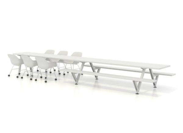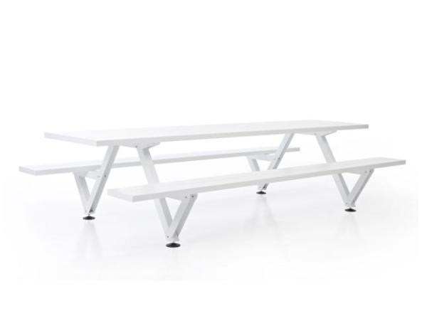 The Marina table is made out of pultrusion glass fiber profiles. This way, seemingly endless tables can be created. The new Marina-line is somewhat atypical for Extremis: Bruno Fattorini & Partners put the emphasis on material innovation, whereas Extremis usually puts the togetherness-aspect first. Bruno Fattorini & Partners opted for a picnic table in its most basic shape and made it out of pultrusion glass fiber profiles. This way, seemingly endless tables can be created. The composite of glass fiber and polyester is a solid, durable and contemporary material that feels just like wood. However, it is considerably less sensitive to temperature changes and humidity. Due to the good quality of the material, the weight of the design is relatively low. Launch : 2012 |