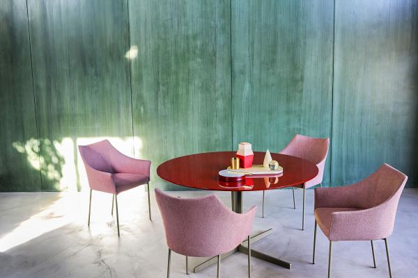 Mayfair reception chair reflects the same curvaceous form as the easy chair, but its slim metal legs make it lighter. Its distinctive design is both practical and comfortable, making Mayfair the perfect chair for sitting at a table, be it in the home or in restaurants and other hospitality settings.