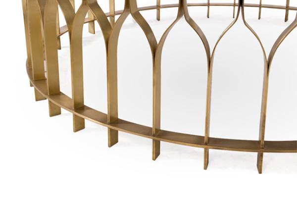 MeccaMosques are majestic architectural works, places for pilgrimage and spiritual cult. Inspired by this, is MECCA center table, whose brass columns resemble the architec- tural heritage from the mosques, believing in this way that all piece sparkles from inside to outside. On the base stands a green marble top, keeping all the structure balanced and united. MECCA center table will enhance your interior decoration, livening up your own home rituals of living, resting and receiving your guests. |