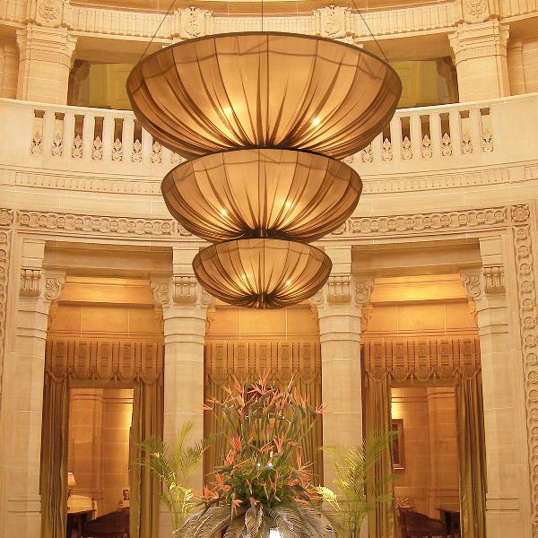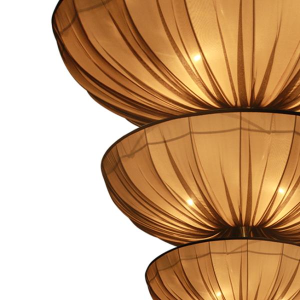 Medusa III Suspension LampOur seductive, round-shaped Medusa has shimmering natural silk pleats which refract incoming light at different angles, thus producing different colors. Just as the sea animal ejects poisonous stinging threads to paralyze the prey, the texture and warm colors of the three layers of fabric in Medusa suspension lamp will mesmerize and hypnotize the viewer. |