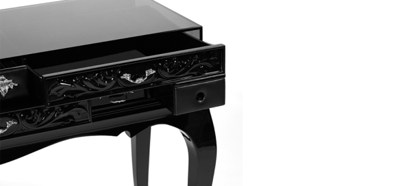 MelrosePRODUCT FEATURES : MELROSE is the materialized return of feminine refuge. Created with Boca do Lobo’s core value of reinterpreting the past and giving it a contemporary style, MELROSE presents a novelty. A mirror that lets you adjust the viewing angle while rotating around a vertical axis, allowing a rotation of 360º. PRODUCT OPTIONS : Drawers: High gloss black lacquer and leather; or high gloss white lacquer and leather Legs: High gloss colored lacquer in black Glass Box: Smoked or Clear Other colors and combinations available with an upcharge. Dimension : WIDTH 1180 x DEPTH 460 x HEIGHT 1470mm |