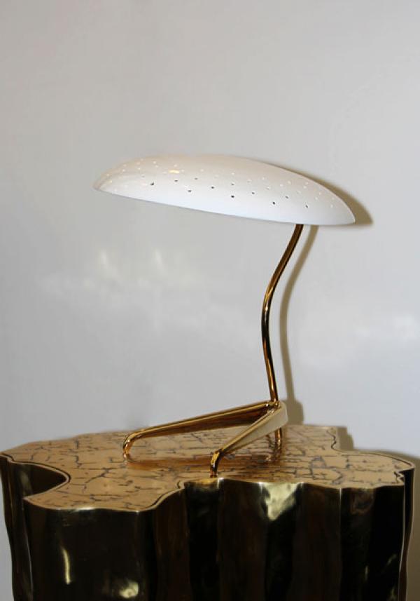 MeolaLike a precious delicate jewel, Meola table lamp is a vintage decorative element with a discrete but elegant presence. Perfect on top of a sideboard, console or a classic desk. Its structure is made in brass, the lampshade in aluminium and the base made in foundry.