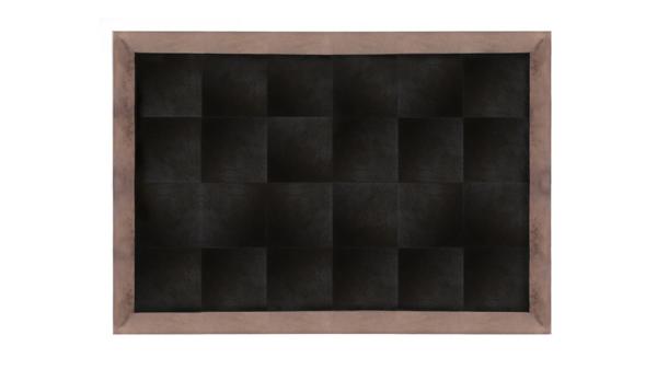 Cowhide rug with Bovine Leather Metallic Border. Bovine leather refers to leather relating to cattle. This extraordinary leather combines strength and suppleness providing a cozy and elegant look for your space. 100% natural leather. Artfully crafted from fine leather, our rugs beautifully create the warmth and softness that only genuine leather can give. Dimensions :