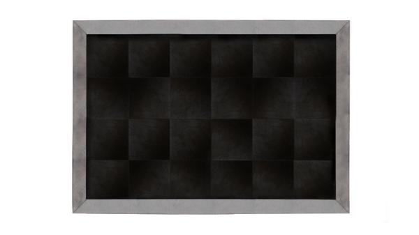 Cowhide rug with Bovine Leather Metallic Border. Bovine leather refers to leather relating to cattle. This extraordinary leather combines strength and suppleness providing a cozy and elegant look for your space. 100% natural leather. Artfully crafted from fine leather, our rugs beautifully create the warmth and softness that only genuine leather can give. Dimensions :