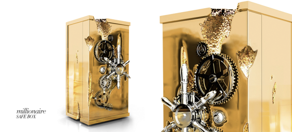 MillionaireBoca do Lobo newest Limited Edition piece a safe-box that promptly takes us to scenes strongly creased in our memory, deeply enriched by today's visual culture. This piece reputes a long life! Born in the beginning of the 19th century, followed the increase of bank robberies after the Gold Rush of 1849 and kept itself sacred to successive break-in attempts, remaining deformed forever. Lockable drawers and a whole structure in mahogany, coated in highly polished brass and dipped in gold, this piece is one of indisputable value. As safe and secure as it's owner, holds secrets to be unveiled only by time itself.