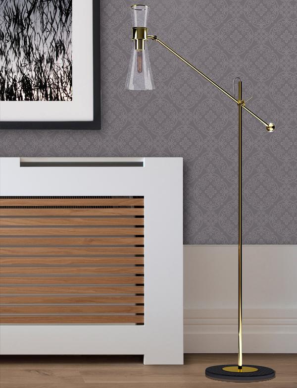 Mitte Floor LampA congregation of travellers from cinema, music, fashion and other creative fields are found in Mitte Design Dsitrict. Mitte Floor Lamp, with its glass shade, ringed with gold polished brass, was born in Berlin's historic core, in a tribute to one of its most dynamic areas of creative emergence. |