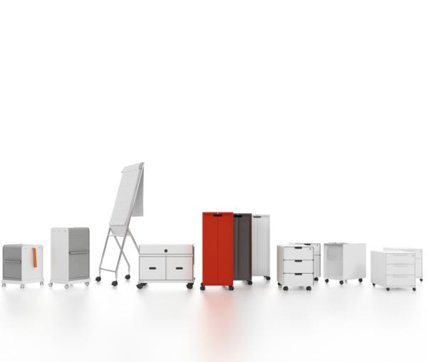 Mobile ElementsMobility is a crucial aspect of modern office work. With mobile elements the work place can be adapted spontaneously, to suit the task in hand. Privacy and communication can be controlled with mobile screens. Files may be transported from one place to another. Mobile tables allow meetings to take place within the team area. Launch : 2002 |