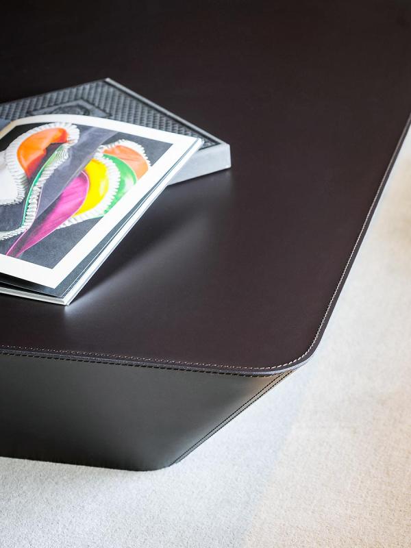 Table: wood covered in hide leather. Colors available: 01 white, 02 black or 03 dark brown. |