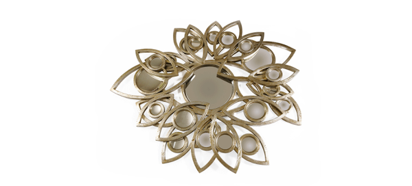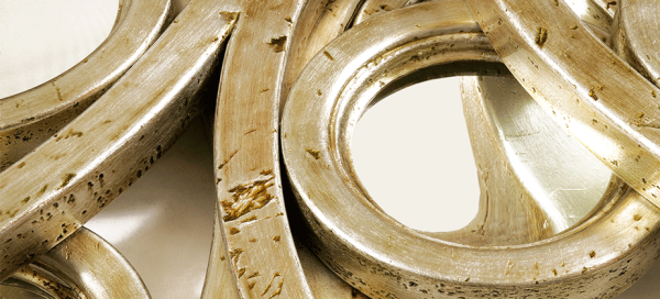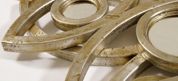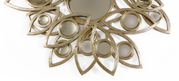 NeapoliThe eye catching hand carved wood of this radiant piece of wall art frames a convex mirror in the center and twenty surrounding concave mirrors. The inherent texture of the particle board wood structure creates a textured appearance which is covered in silver leaf finished with a translucent patina high gloss varnish. Dimensions : WIDTH 1850 x DEPTH 90 x HEIGHT 1620mm |