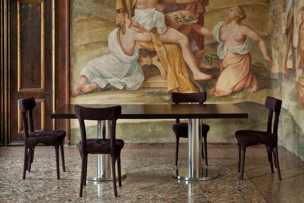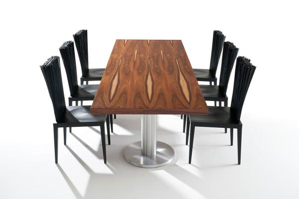 NeoliticoTable of rectangular or squared shape, it stays on solid aluminium columns. Top is realised in wood cave inside; it is available in all the colours of the collection, in wood fi nishing or metallic lacquer. Aluminium bases are available matt or polished. It is available in different highness for different uses. Launch : 1998 Dimensions :