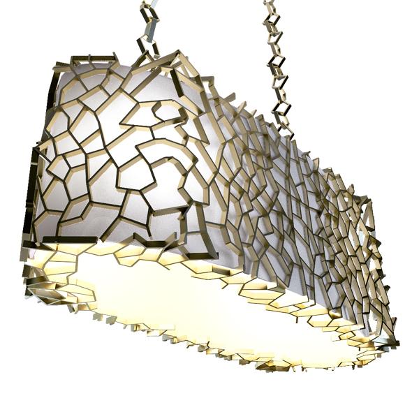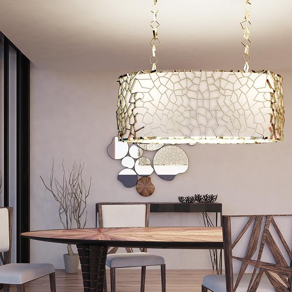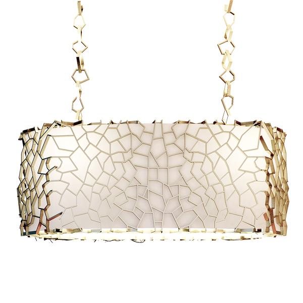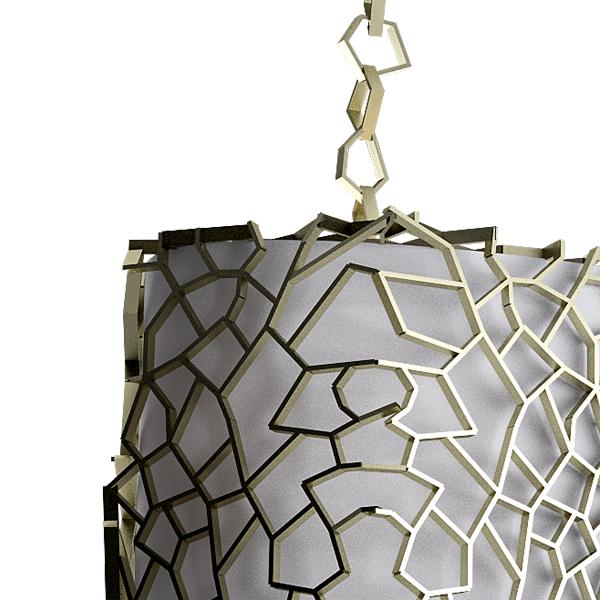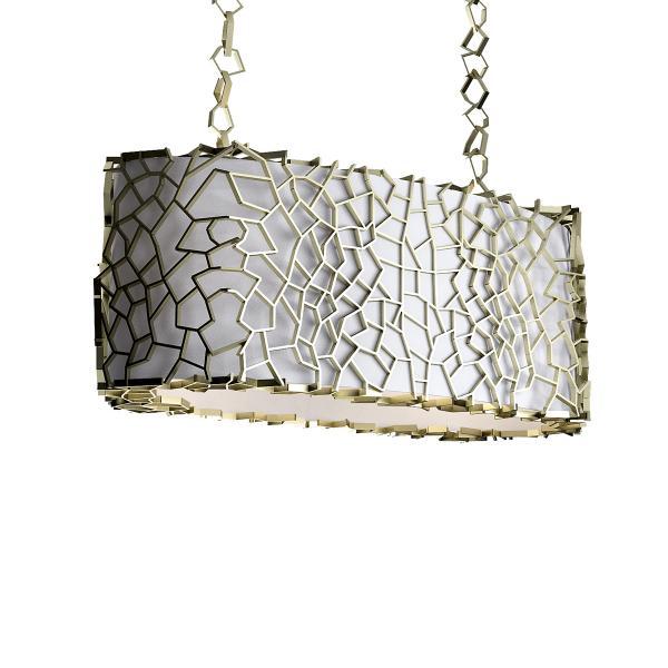 Nest Suspension LampA monumental suspension lamp was designed to brighten the dining room with an emphasis on unique mood lighting. The light on Nest will not reflect only down towards the dining table; all facets of the imposing golden lampshade allow light to seep through and create fantastical shades on surrounding surfaces. Nest suspension lamp’s exterior structure in gold finished brass is much like a bird’s nest. It’s completely handmade and attached individually, creating a unique pattern each time a new piece is produced. |