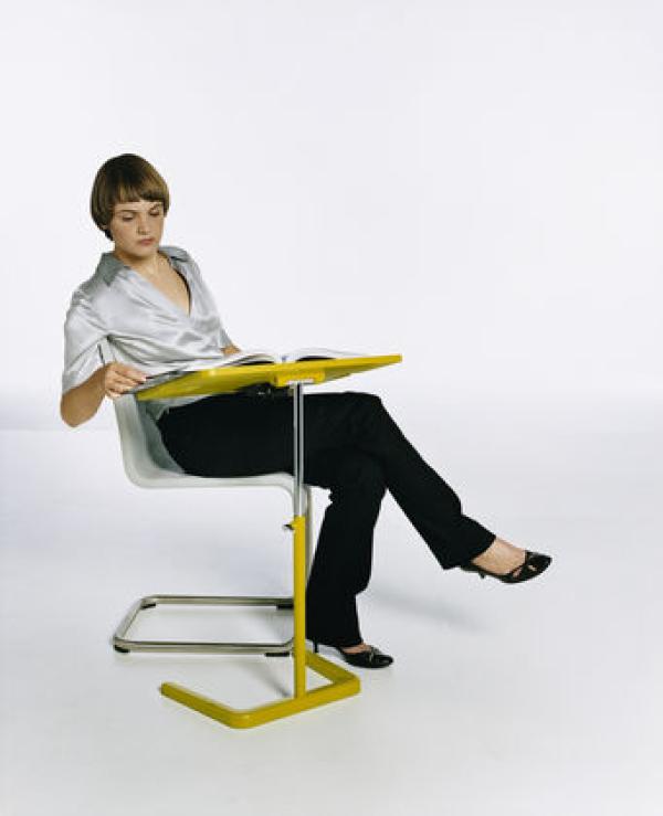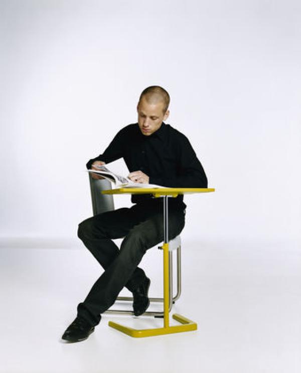 NesTableThanks to technological innovations, a person can work on a laptop computer from anywhere — yet suitable furniture for this purpose is often lacking. NesTable provides a simple and flexible solution to this problem. The surface of this occasional table is height adjustable, which makes it possible to maintain a correct ergonomic working posture, even while working from a sofa or lounge chair. Materials: Table surface in polyurethane, tube column in powder-coated steel. Extension bar in steel, polished chrome finish. Base feet in die-cast aluminium, powder-coated finish.