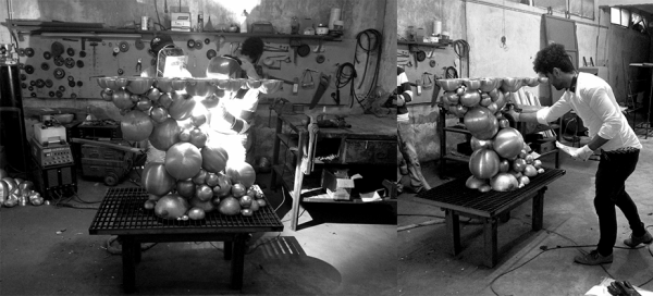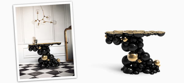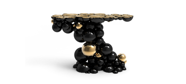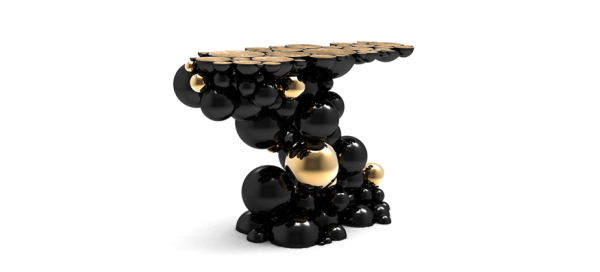 Newton ConsoleAfter our recent outstanding moment of inspiration - the creation of Newton dining table - we conceived a console inspired by this exclusive piece of furniture. Once again, we defy the laws of physics and redesigned this monumental console made from aluminum and lacquered in black, with a high gloss varnish. The spheres and semi spheres that complete this futuristic console are gold plated. This intriguing console is ideal for any modern living rooms, bedrooms and hotel lobbies characterized by luxury interior design furnishings. Dimensions : WIDTH 1280 x DEPTH 480 x HEIGHT 850mm |