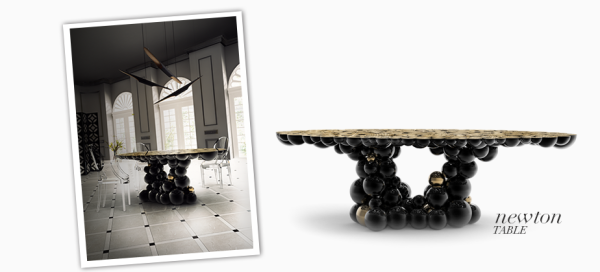 Newton Dining TableWe are still working hard on new challenges for artisans and designers, new techniques, materials and concepts are still being tested now it’s a “MOMENTUM”. Newton is our truly moment of inspiration, a table completed byspheres and semi spheres that joined together complete this dining table with this exquisite look. Inspired in Newton’s law of gravity, we were looking for an object capable to reflect the sphere attraction as they were joined with their mass, force and energy. This table is ideal for 8 to 10 persons who will be amazed when gracing this masterpiece at your home. This table has three different versions: Second Version Gold plated brass spheres finished with high gloss varnish on the base and a top made by an amazing myrtle burl veneer , finished with a high gloss varnish. Dimensions : WIDTH 2600 x DEPTH 1420 x HEIGHT 780mm |