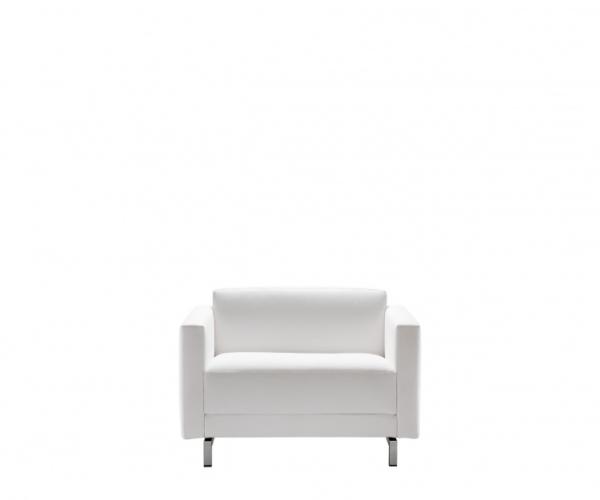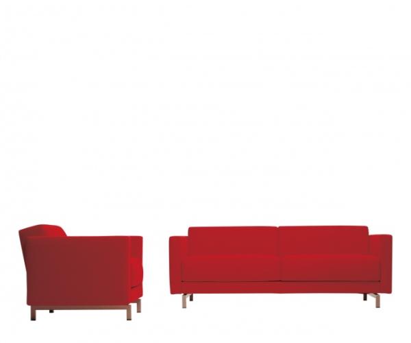 NormanSystem of armchairs and two or more seater sofas. Internal structure in steel tubing for total disassembly with steel leaf-spring to improve the flexibility of the backrest. Filler in CFC-free flexible cold-processed polyurethane. Feet in steel tubing coated with epoxy powders in satin aluminium finish or in polished stainless steel. Covering in fabric, synthetic material, leather.
