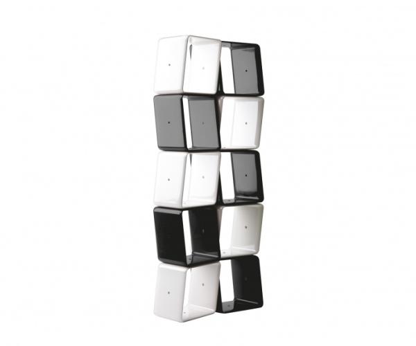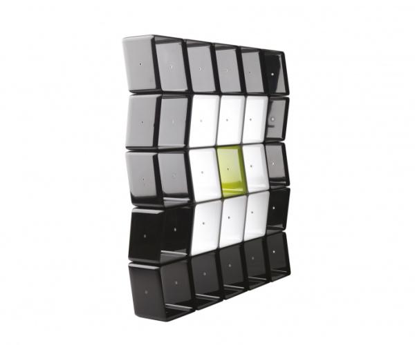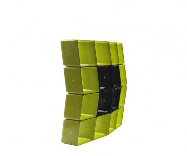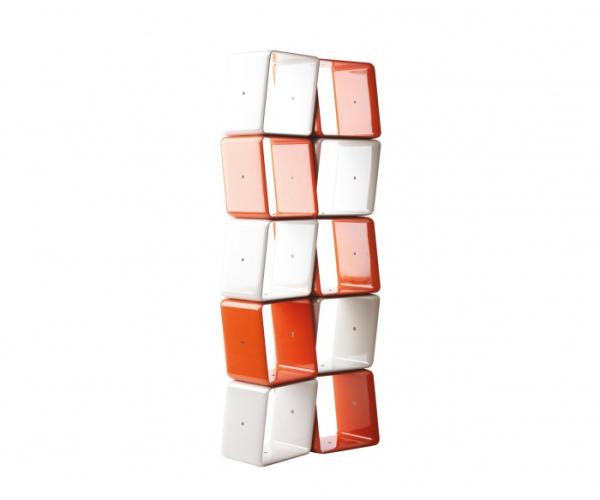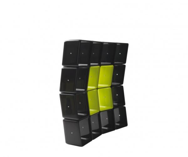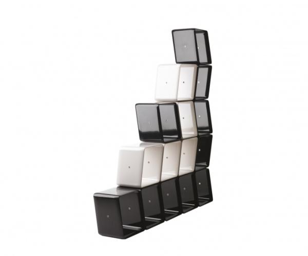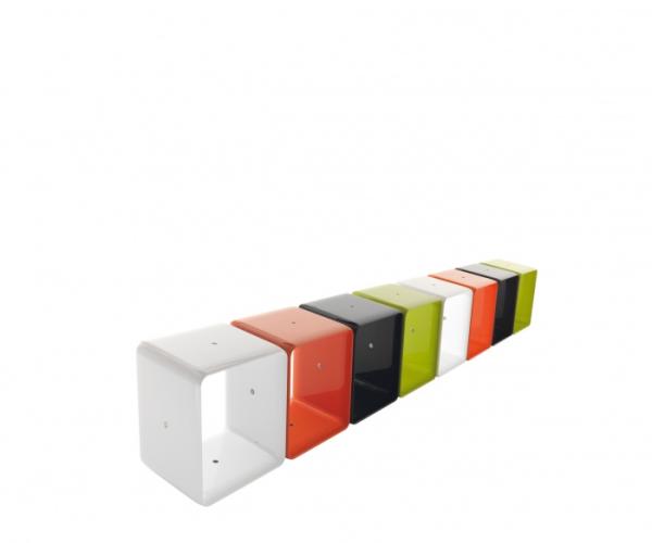 OboModular container unit made with high-gloss plastic whose repetition and combinations are the base of a system of containers and spatial partitions. Each unit comes with two connection elements - also available separately – that make it possible to connect it to other units. Obo can also be used as a sidetable and it is available in four colours: white, tangerine, lime green and black.