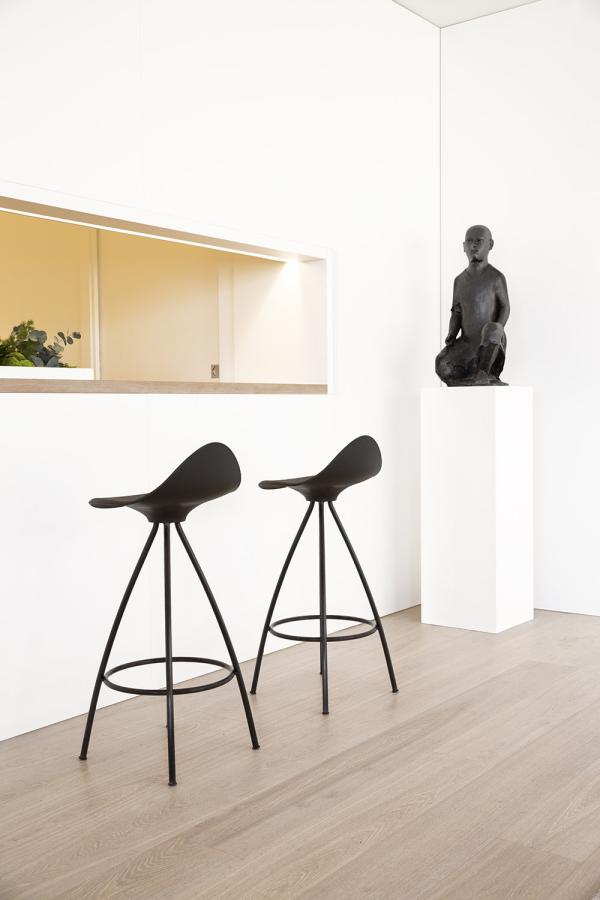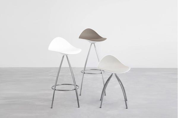 Onda"ONDA, design Jesús Gasca STUA is delighted to present the ONDA stool. This visionary design has been conceived by Jesus Gasca, who founded STUA more than 20 years ago. The shapes of ONDA mimic the curves of the human body as well as the curves of a wave. Like a glove, the seat moulds following the contours of the sitter and provides lumbar support by hugging the person´s lower back. The seat is very innovative, it has an extra soft rubber 'skin' which gives superb comfort. The inner “skin” is slightly smaller than the shell. Both shell and skin form an interesting colour and textural contrasts. The skin and shell are moulded simultaneously so that the final product incorporates two different materials, densities, and colours. Overall, a rich and elegant solution. With a stainless steel frame, ONDA is suitable for both indoor and outdoor use. There is a new option for the frame: made of steerl chromed to shiny or matt finish, for indoor use only. The four legs curve out smoothly forming a lightweight but stable base.