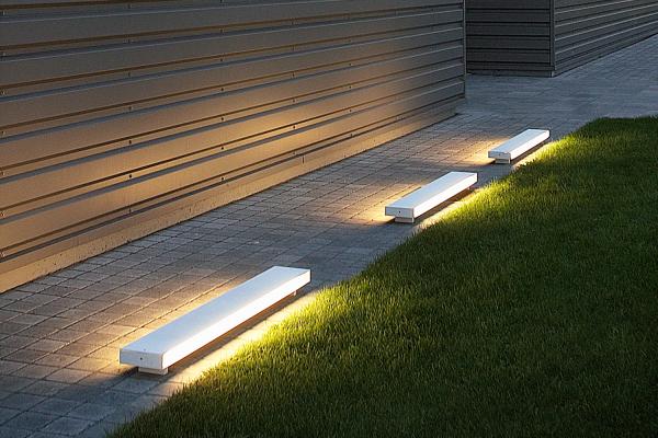 'Outlines' is a discreet but effcient exterior lighting system. The construction is sufficiently strong that it can easily bear the weight of an adult person. All the aluminium parts are specially treated, so that they are resistant to even the very severest conditions. The remaining parts are made from top-quality stainless steel. 'Outlines' can be positioned on the ground, but can also be fixed horizontally or vertically to a wall.