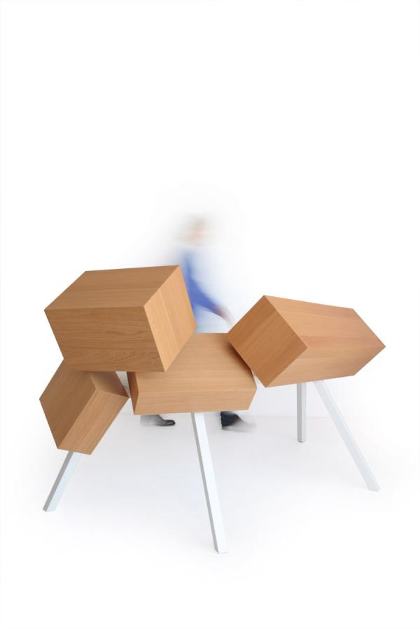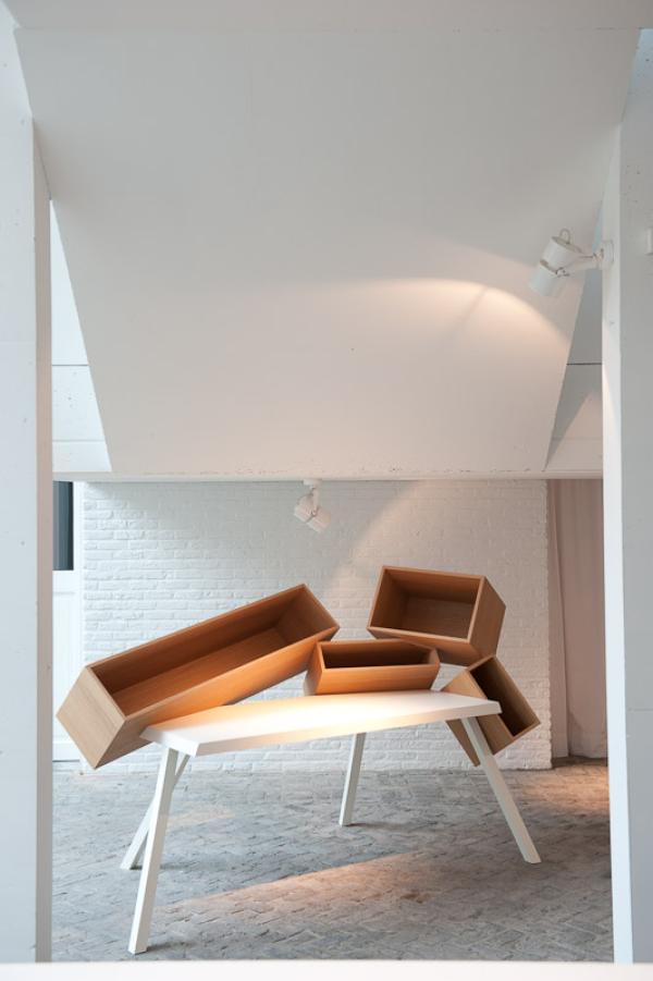 Overdose"""The overdose desk is a workspace inspired by my own mess. I always work at several projects at the same time. I needed a desk into which I could quickly throw someting and, above all, quickly retrieve it. It is a dynamic desk that is a joy to work at casually.""