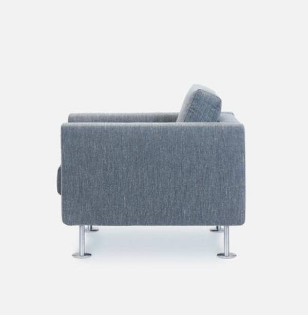 Park Armchair / Park Swivel ArmchairJust like the Park Sofa, the Armchair and Swivel Armchair offer great comfort thanks to soft upholstery. While the Park Armchair also continues the formal language of the Sofa down to the last detail, the Park Swivel Armchair is equipped with a free-moving, swiveling frame. The squared base plate and a central, cylinder-shaped base highlight the chair’s classic-modern design. Here too, all covers are removable. Polished aluminium feet, solid wood frame, polyurethane foam and polyester/ wool upholstery.