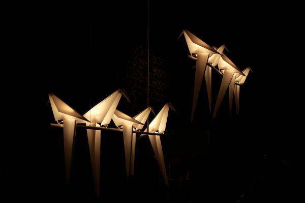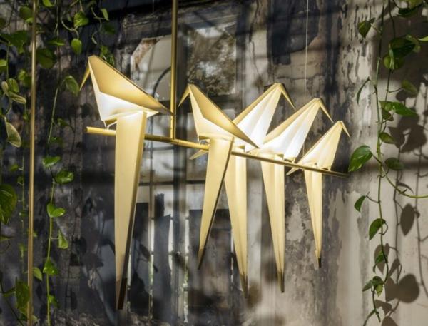 Perch Light BranchDesigner: Umut Yamac What is more poetic and elegantly captivating than a bird perched on a branch, flirting, singing and celebrating life? We all recognize this image and steal a moment from our precious time to admire this triumph of nature and beauty. Inspired by such natural glory and forever fascinated by the combination of balance and movement, Umut Yamac has created six lamps which captivate the viewer through motion, poetry and grace: the Perch Light family. A series of sculptural abstract lamps, made of folded paper and brass, come to light ot their metal perches, like birds gracefully balanced on a branch. These sunlit birds are free to swing when softly touched, gently glowing and bringing along the promise of spring. |