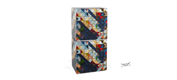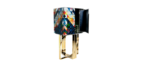 PixelPixel is our tribute of the joint effort between the design and manual skill of the craftsman. The 1088 triangles that fulfill this piece, with a diversity of finishes never seen before mixed – silver leaf, gold leaf, lacquering, 10 kind of wood leaf – carry the dedication and art of those who build it. Inside this piece we reinterpret a material and a technique that was left in time – aged mirror and “capitoné”. The polished brass base, gives to Pixel a unique personality, a strong and at the same time sophisticated character. BOCA DO LOBO still keeping design to the highest prestige level. Dimensions : WIDTH 800 x DEPTH 600 x HEIGHT 1630mm |