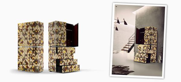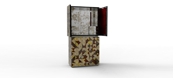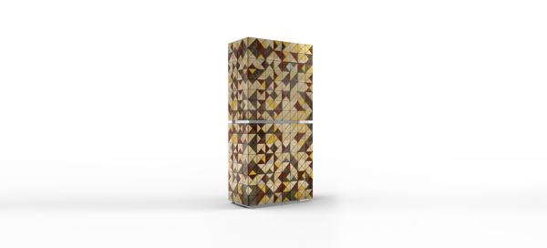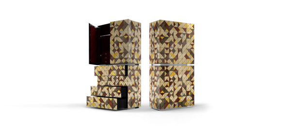 Pixel AnodizedAward-wining Pixel, with a new touch of geometrical art deco, will blow your guests away in the style stakes. The new cabinet is now more spacious as it is composed of two separated parts, divided by a panel made from polished acrylic. Inside its top we reinterpret a material and technique left in time – aged mirror and “capitoné”. It contains four drawers decorated with handles in gold. This exquisite piece is composed by 1664 triangles made from anodized aluminum, creating beautiful shades like champagne, crème and pearl. These colors complement each other. The elegance of champagne and the warmth of pearl are a striking combination that will create a sophisticated ambience. The polished acrylic base gives Pixel a distinct personality, a strong and at the same time sophisticated character. Dimensions : WIDTH 810 x DEPTH 410 x HEIGHT 1660mm |