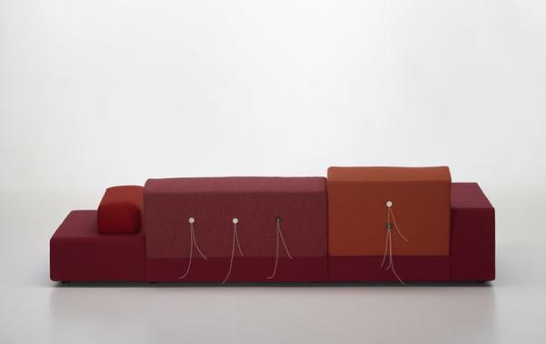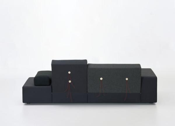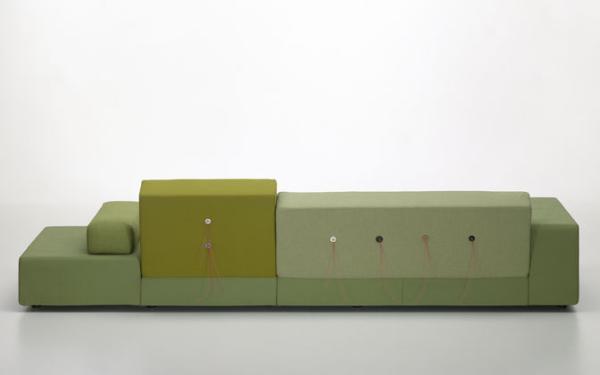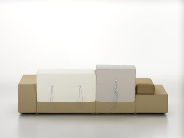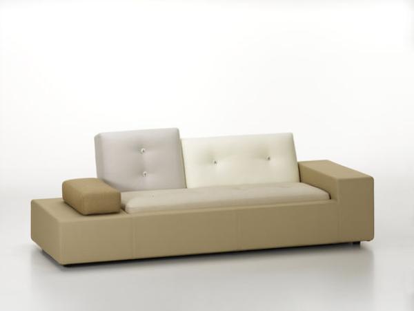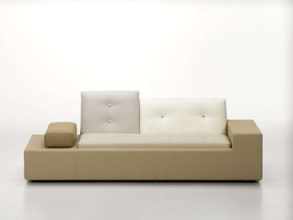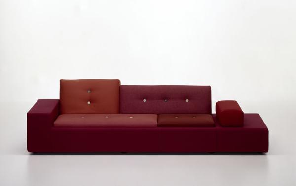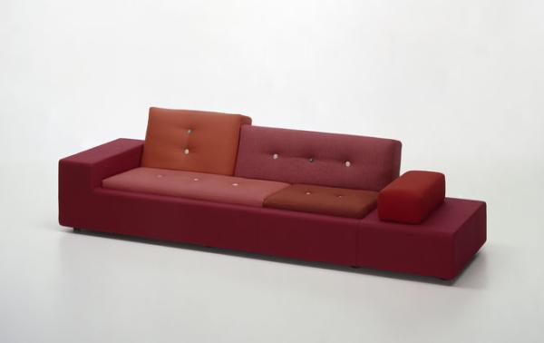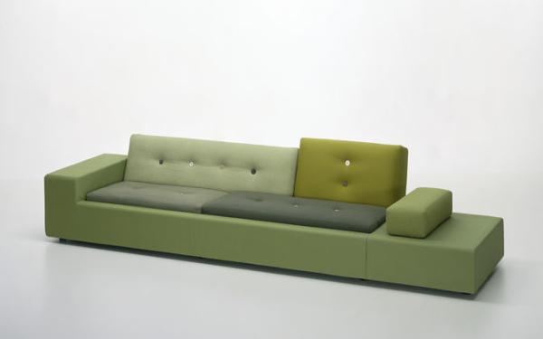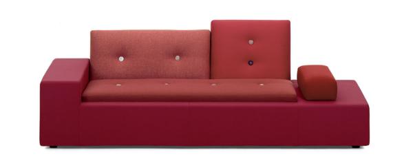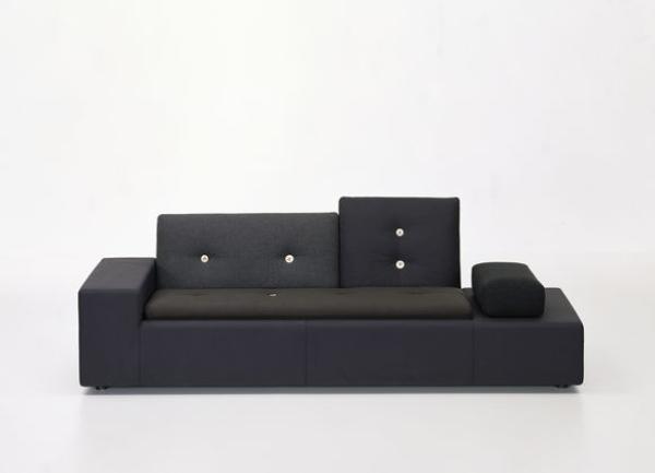 In Holland “Polder” refers to the artificial land reclaimed from the sea by means of dykes and drainage canals. The body of the Polder Sofa is just as low-lying, just as flat, and has just as much emphasis on the horizontal. Hella Jongerius chose for it five carefully selected colour combinations and fabric qualities, accentuating them with high-tech threads and large buttons made of natural materials.