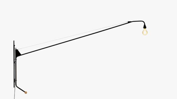 PotenceDesigned for the "Tropique" house, Potence, a swivelling wall light is considered one of Jean Prouvé's purist masterpieces. In particular, it is its sparing use of materials and austere design that make the luminaire fascinating. Materials: Metal tube with wall-mounting, painted black, with dimmer cord.