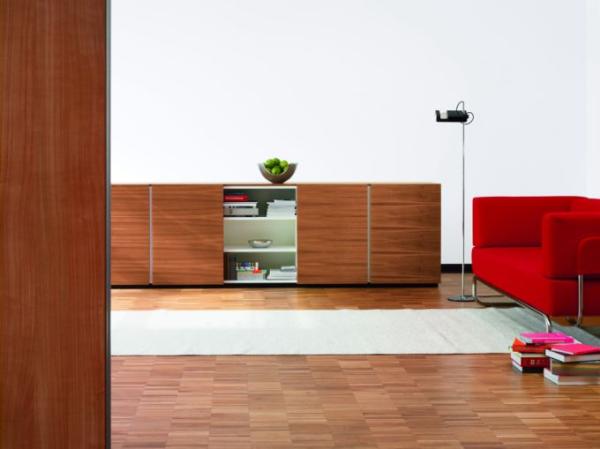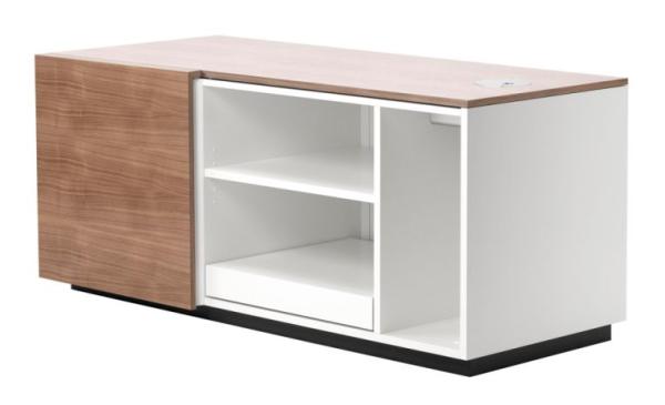 Program 1800"THE THONET EXECUTIVE OFFICE PROGRAMME 1800: ELEGANCE FOR THE EXECUTIVE FLOOR High-quality materials, clear forms and high functionality: the program offers diverse possibilities for filing and storage in offices, conference rooms, waiting areas and homes. It includes sideboards, high boards and containers in different sizes and versions, with doors, drawers, or as open shelves. The shelf heights can be adjusted. Elegance and quality of the details are what make this program special. All elements are well proportioned. No handle or inlet interferes with the wood fronts. The white lacquer surfaces of the body look fresh and vertically structure the fronts. Technology container with electrical and data connections and space for CPU, printer and cable management.