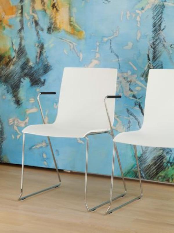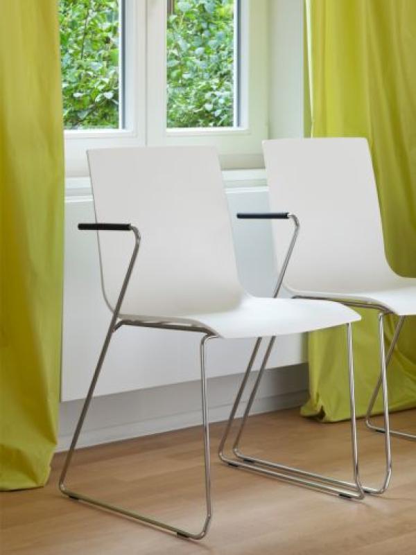 Range S 180"A PERFECT ADDITION: THE NEW S 180 SERIES A perfect addition: The new S 180 series can be perfectly combined with S 160 and S 170 series since all three designs share the same seat shell. The whole product family is ideally suited for use in public and commercial event spaces. The S 180 series is characterised by a sled base that lends the chair a dynamic and distinctive look. The S 160, S 170 and S 180 chairs guarantee time-efficient and safe assembly in large halls, lecture theatres and churches. The chairs' slim shape allows closely arranged rows, resulting in an optimal use of space. Sinnvoll ergänzt: Das neue Programm S 180 lässt sich mit den Programmen S 160 und S 170 hervorragend kombinieren - alle drei Stuhlserien haben eine einheitlich geformte Sitzschale. Die gesamte Familie ist für die Anforderungen im Objekt in besonderer Weise geeignet. Gekennzeichnet ist das Programm S 180 durch ein Kufengestell, das dem Stuhl Dynamik und Prägnanz verleiht. Die Stuhlprogramme S 160, S 170 und S 180 lassen sich in Sälen, Vortragsräumen und Kirchen schnell und sicher auf- und abbauen. Die schlanke Form der Stühle erlaubt eine enge Reihenbestuhlung und bietet damit eine maximale Raumnutzung. The stackable chairs of the series are available in various designs: with or without armrests and with or without upholstery. The sled frame is made of chromed steel tubing and the seat shell is made of plastic or moulded plywood." |